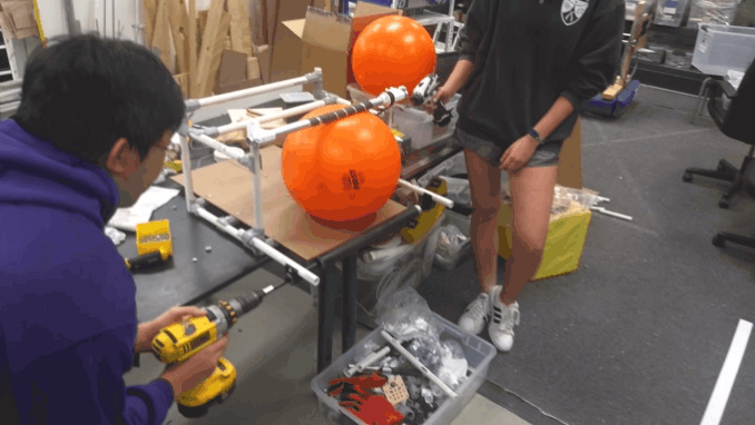 Today we quickly added a bottom roller to help eject cargo further than we were before. On the real design this bottom roller may be accuated to help us intake cargo from the floor as well.