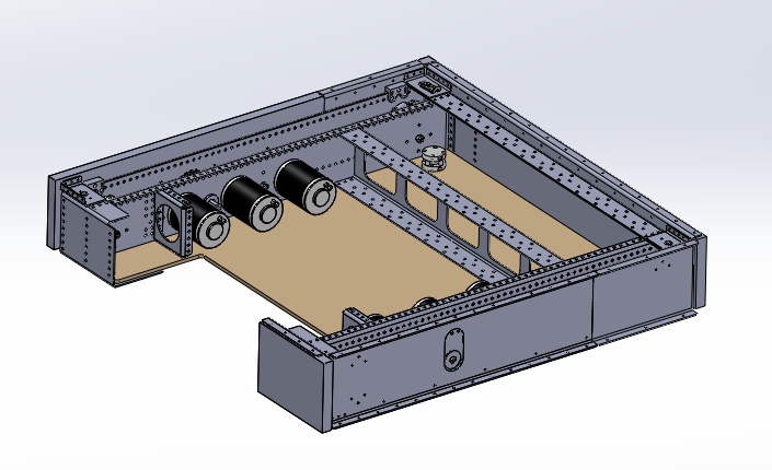 The plan for the drive train is a relatively simple single speed drive train with 6 MiniCIMs or a possible 1 CIM and 2 MiniCIMs on each side of the drive train. We are geared 12:72 which was the same gearing we used in 2014. We’ll have a little less acceleration than we did that year if we keep it at 6 MiniCIMs but should be fine for our top speed. You can see we have already started designing the bumper brackets for the robot this year as well. We are planning to use Slide Snap Latches similar to team Neutrino FRC#3928.