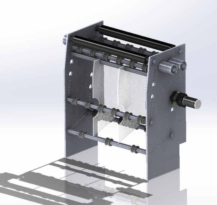 Our 2nd subsystem is our shooter. Our plan here is to be a 3 wide shooter that shoots from inside of the key. We are using 2 small drums to shoot the balls. Initial testing proved that we could get these drums up to speed quickly and power them with very little reduction from a 775pro. We are actually going to be driving these ~1.5in rollers using GT2 belts with a 1:2 reduction off the 775pro motors. This system will be tested more this coming weekend. We are waiting for the GT2 belts to come in from WCProducts. Our test version was only a single ball wide and was powered by 4 775pros that were all in VersaPlanetary gearboxes and chain to the rollers.
