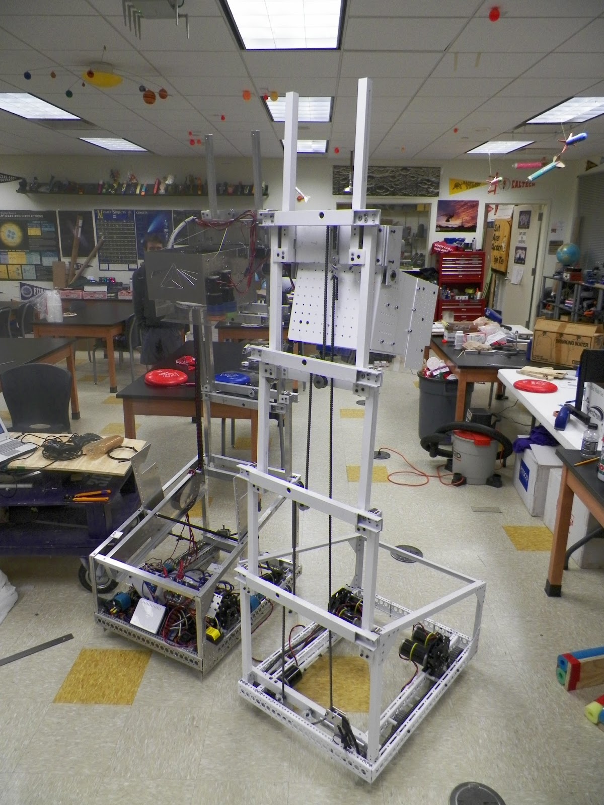 18 Hour days and we still have a lot to got on our competition robot. The competition robot will be wired tomorrow and it will takes it first shoots just hours away from being sealed up on Tuesday night. The practice robot is shooting well, but we need to build in some hard stops for the shooting position. Our collection is super fast which should mean we won’t have to make any trips to the feeding station.