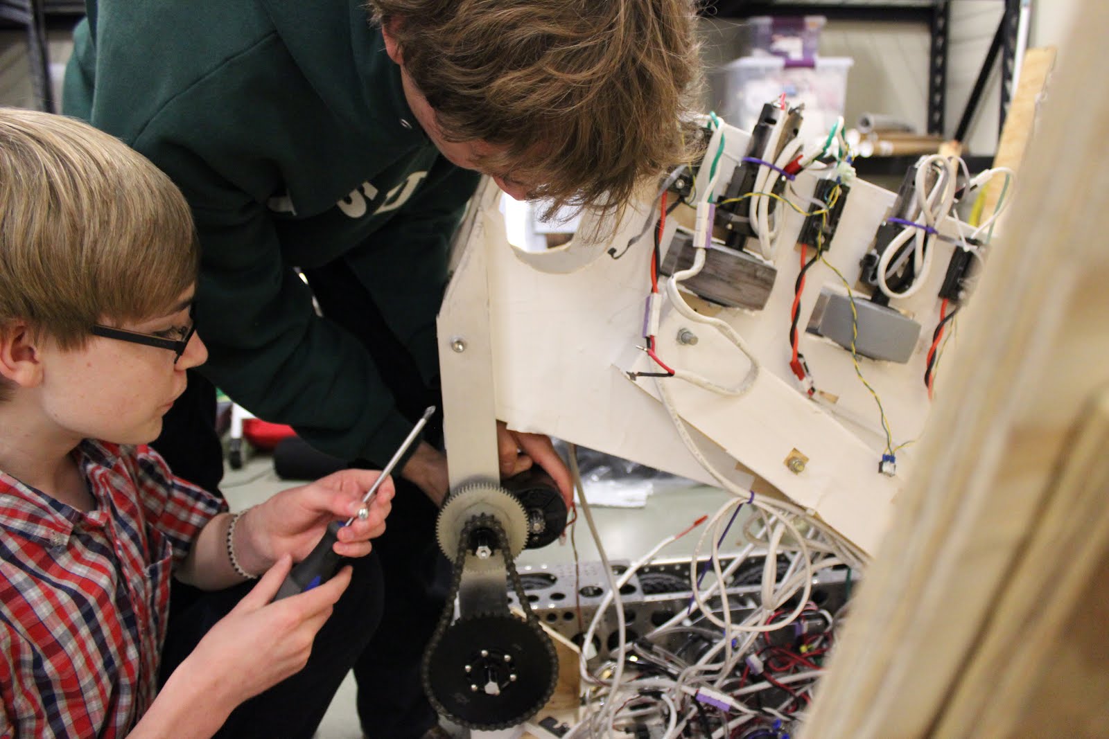 We continued working on prototypes, including retro fitting one of our off-season robots to be a climbing test bed. We had it do a test climb but we had attached the rope to it. Now to learn how to grab the rope.