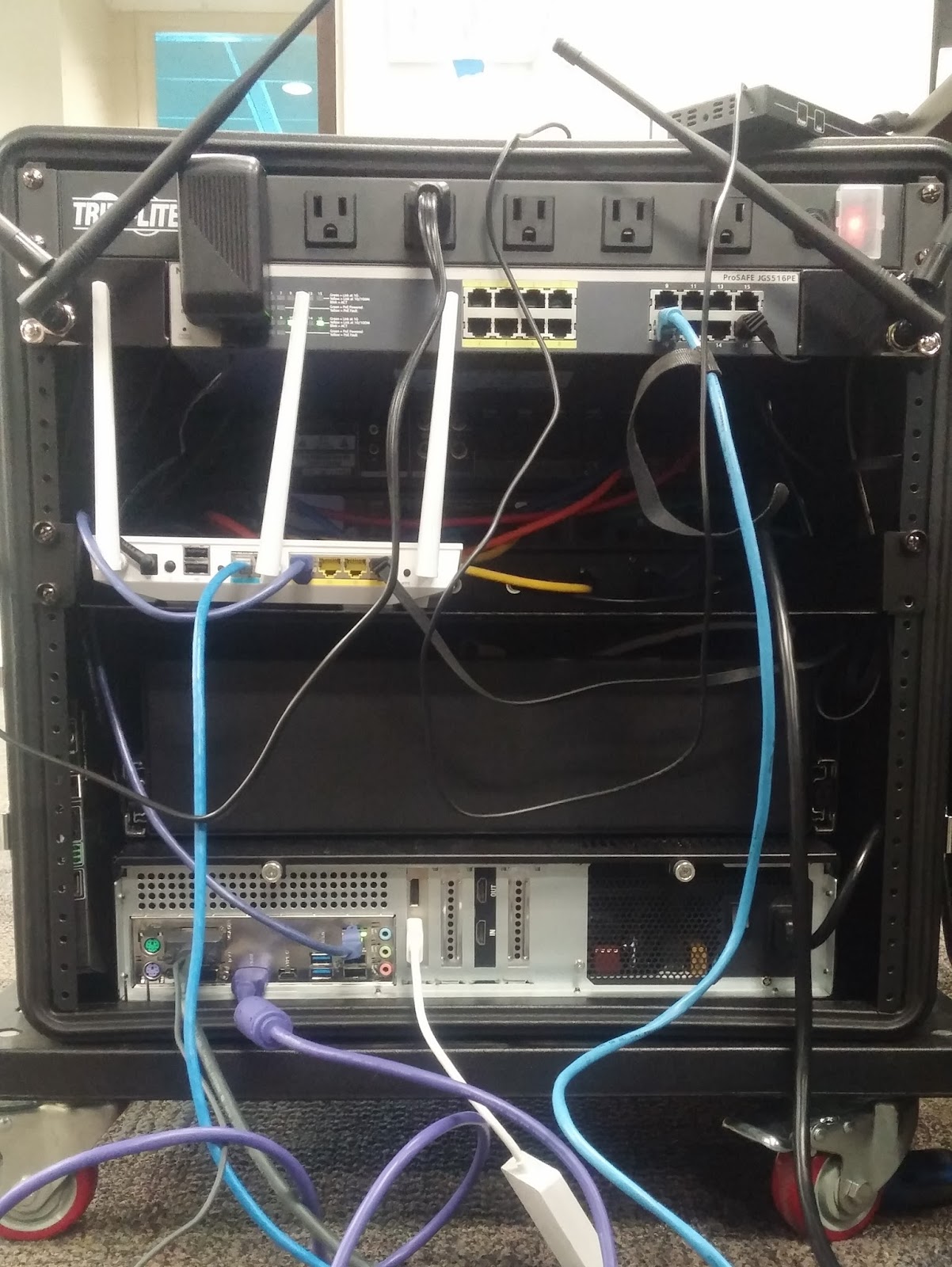 The advantage of this box is much of the system is able to stay wired together between events. The microphones are already connected to the mixer. The PC is setup and ready to connect to the network cameras we use and start the streaming. This should dramatically reduce our setup time at events.
