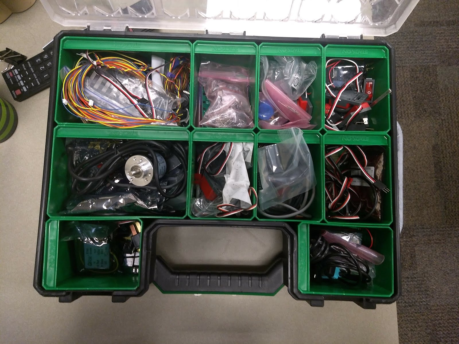 We also keep breakers, 12v-5v DC-DC converters, jumpers, and some other cabling in the case.